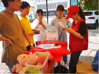 第二部分,现场互动答题。 活动当天,志愿者们一早便开始了活动现场的布置。此次活动,最大的亮点就是在于可以通过“现场答题、回收旧衣物”等抽取红包,并为幸运者提供了精美小礼品,吸引了众多同学的眼球,活动现场的氛围十分热闹。