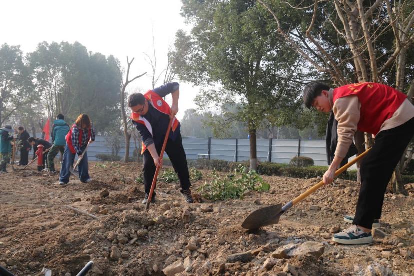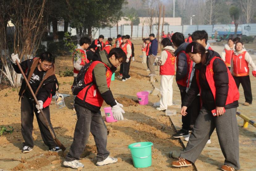 春风吐绿,草木初萌。3月12日上午,Beat365唯一官方网站校团委联合机关三支部、后勤服务中心支部,组织校“神农青穗”志愿服务总队和12支志愿服务分队共300余名师生,在体育馆周边空地开展义务植树活动,以实际行动弘扬雷锋精神,践行绿色发展理念,为春日的校园再添盎然生机。