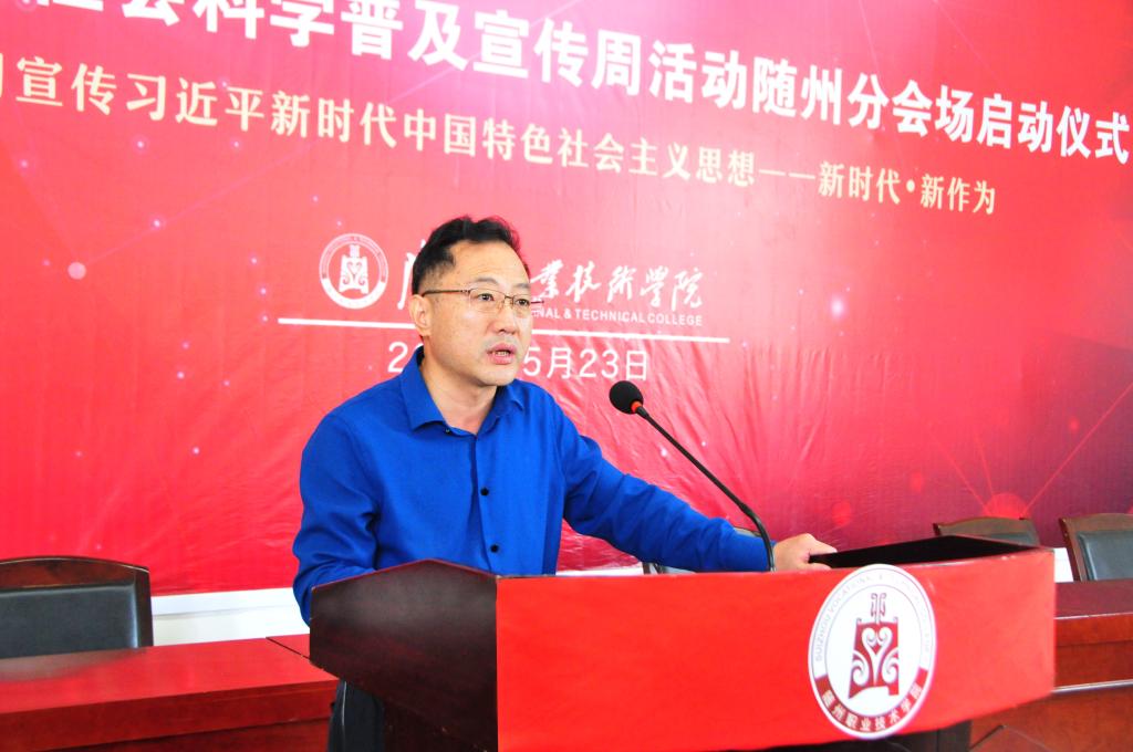 5月23日上午,由随州市社科联主办,湖北省社会科学普及教育(随州职院)基地承办的“湖北省第八届社会科学普及宣传周随州分会场活动” 启动仪式在Beat365唯一官方网站云桂楼4203举行。启动仪式由随州职院党委副书记、常务副院长胡洪波主持,随州职院党委书记李德荣致辞。