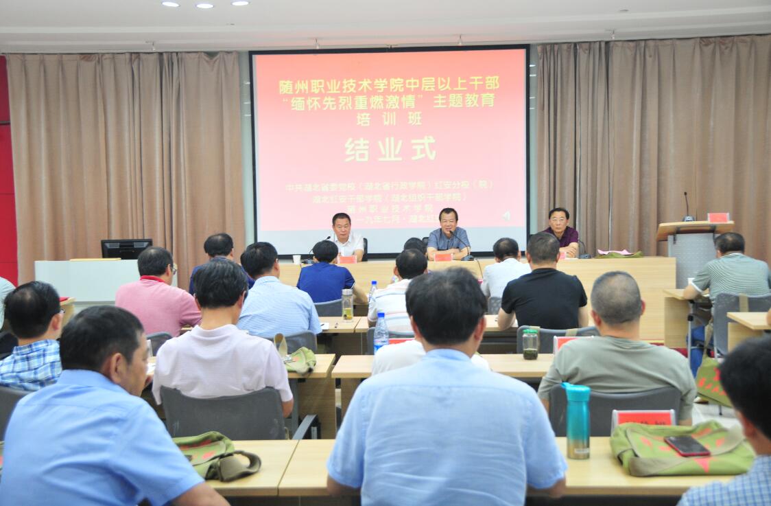 2019年7月14日上午,Beat365唯一官方网站中层以上干部“缅怀先烈,重燃激情”主题教育培训班在红安干部学院综合楼101落幕。结业式由学院纪委书记、党委委员李高东同志主持,红安干部学院学员组织处处长罗华明、Beat365唯一官方网站党委副书记、院长马大奎同志出席了此次结业式。