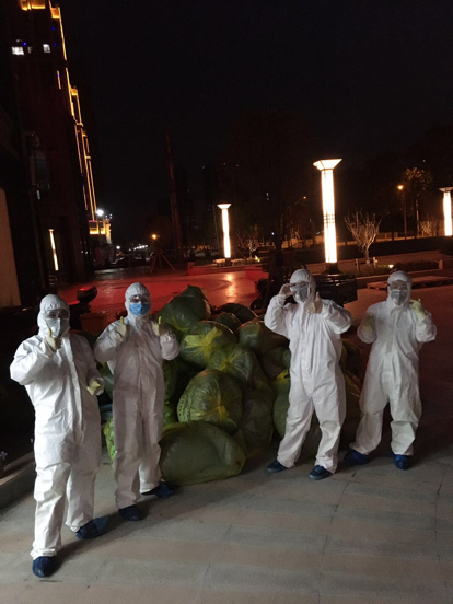 图片为吏雯文与同事一起处理患者使用过后被服