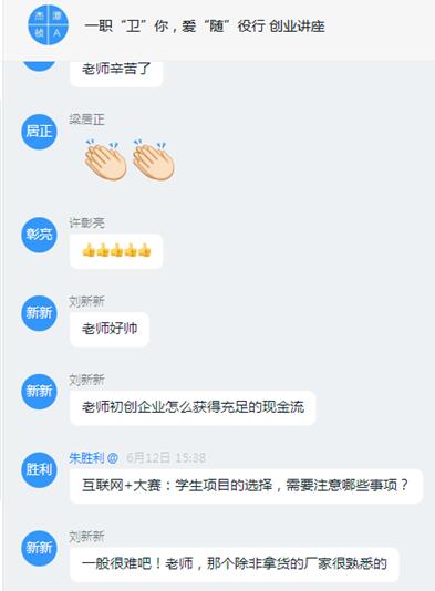 讲座期间,参与师生反映热烈,会议平台聊天面板不时被提问、感悟、赞扬、感谢等类别的反馈刷屏。会后,老师跟学生均反馈此次专题讲座效果很好,“张老师讲的很接地气,非常精彩!希望通过此次两院交流合作的系列活动,共同提升两院就业创业管理水平,为社会培养更多优秀人才”。(编辑:张亦飞 审核:肖新俊)