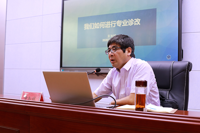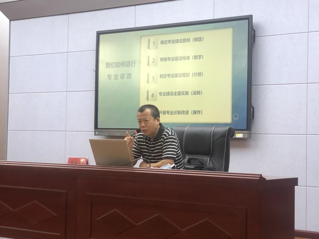 培训会由党委委员、副院长童加斌主讲,他作了题为《我们如何进行专业诊改》的专题报告。提出一”建”(建立体系)、二“转”(自行运转)、三“诊”(诊断问题)、四“改”(改进提升)的专业诊改步骤 。并以护理专业为例,从确定专业建设目标(锁定)、明确专业建设标准(数字)、制定专业建设规划(计划)、专业建设全面实施(运转)、开展专业诊断改进(操作)五个方面来阐述专业诊改具体实施办法。