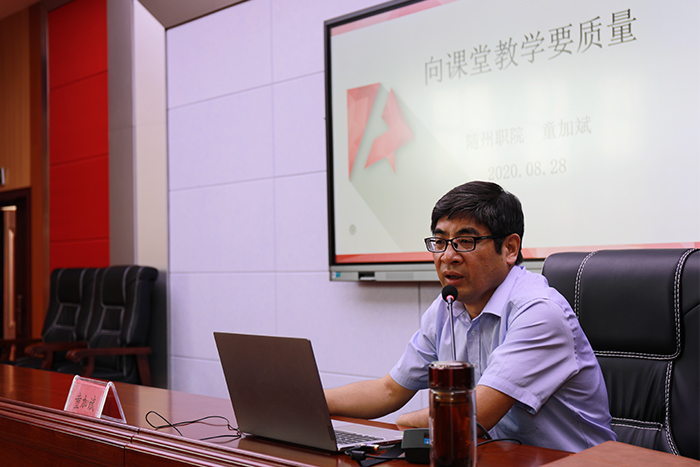 会上,党委委员、副院长童加斌作了题为《向课堂教学要质量》的报告。在报告中,童加斌对什么是课堂教学、课堂教学的重要性做了详细阐述;对教师课堂教学提出了十个要求;提出了课堂教学质量的十个衡量标准;对《Beat365唯一官方网站查课办法》、《Beat365唯一官方网站听课办法》做了详细解读,对查课、听课等工作提出了具体要求。