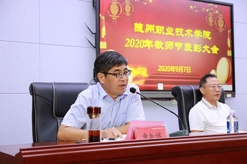又是一年丹桂飘香季,9月7日,随州职院在学术报告厅召开“2020年教师节暨先进个人表彰大会”,党委书记李德荣讲话,院长马大奎主持会议,院领导童加斌、梁学军出席会议,全体教职工参加会议。