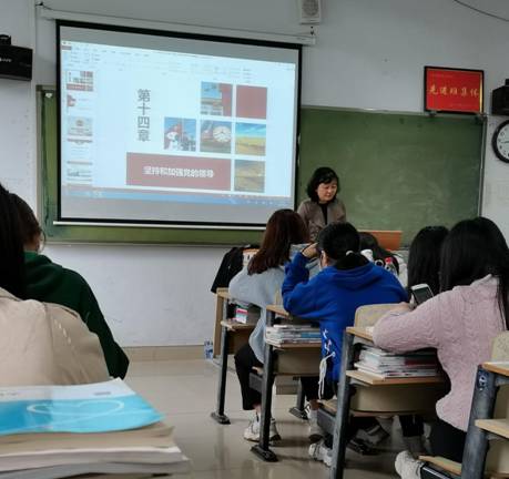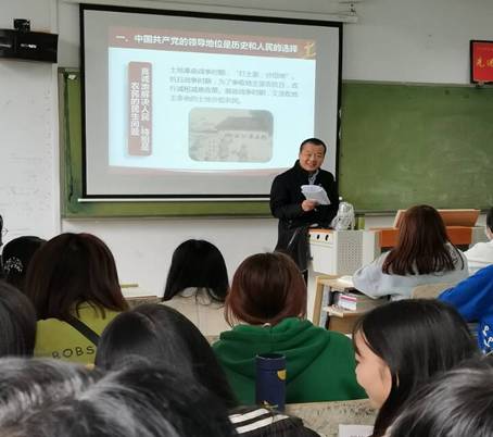 本节课由马克思主义学院思政课教师黄小平主讲,她从中国共产党的领导地位是历史和人民的选择、中国特色社会主义最本质的特征以及新时代中国共产党的历史使命三个方面,铿锵有力地讲解和回答了为什么要坚持和加强党的领导,充沛的敬党、信党和爱党之情深深感染了在座的学生和领导。