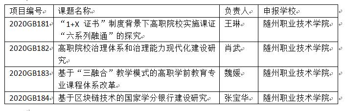 近日,从省教育厅获悉,根据《省教育厅办公室关于做好2020年度教育科学规划课题申报工作的通知》(鄂教办函〔2020〕4 号)精神,经校内初评、推荐,专家评审、公示,湖北省教育科学规划领导小组审定,我院4项课题顺利立项。具体情况如下: