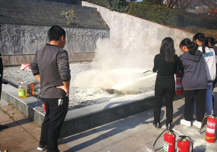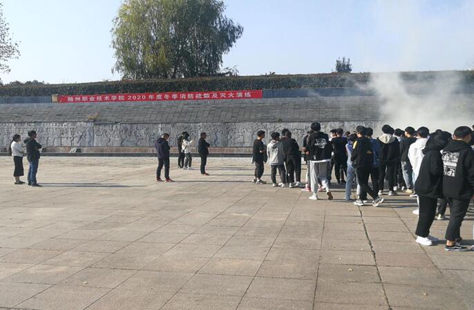 为提高我院全体师生消防安全意识,牢固树立“生命至上”的理念,11月9日下午,我院在编钟广场举行2020年度冬季消防疏散及灭火演练活动。 活动现场,数十名师生逐一实践操作演练,提着灭火器对演习火场进行扑救,准确掌握了“提、拉、握、压”的标准操作,达到了良好的培训演练目的。