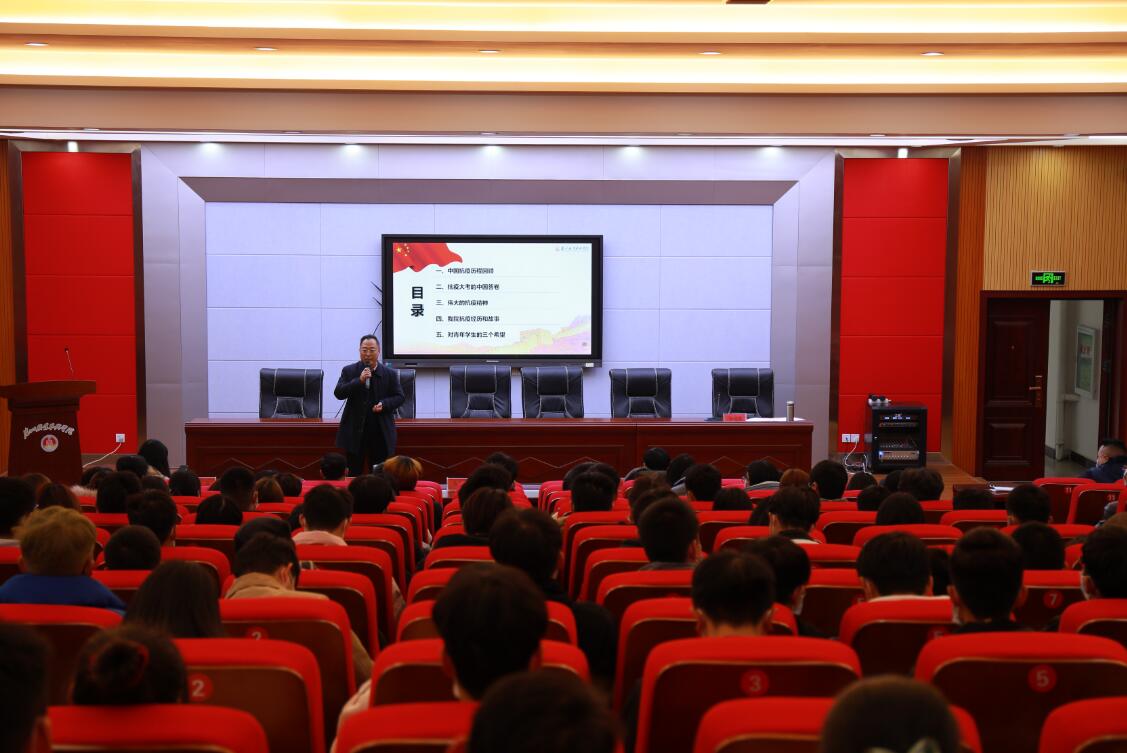 11月30日,学院党委书记李德荣在学术报告厅为300多名学生和思政课教师、学管干部作了题为《疫情大战大考下的中国答卷和随职答卷》形势政策思政课讲座。