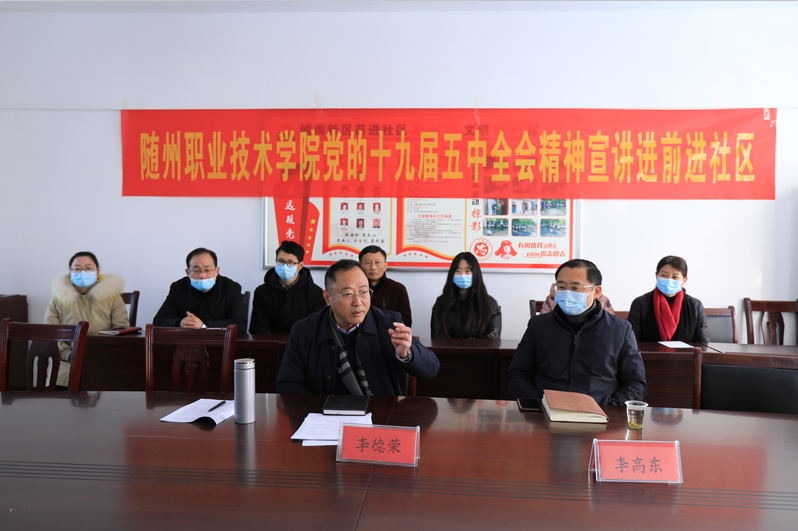 为进一步加强社区基层组织建设,推动十四五时期社区工作的治理,12月30日,学院党委书记李德荣率党委委员、纪委书记李高东,党委相关部门负责人等一行11人,前往我院党员干部下沉前进社区村委会,向社区党员干部宣讲党的十九届五中全会精神。