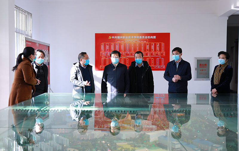 陶宏一行走进校园,实地察看了随州市体育馆建设项目、土木与建筑工程学院实训室、服装与艺术设计学院实训室、行知楼学院规划沙盘。在参观校园,了解学校发展规划、专业建设、招生就业等情况后。陶宏说,近年来,随州市对高职教育事业高度重视和大力支持,随州职院发展取得了很大成绩,办学有特色、育人有成效。他要求学院要进一步明确人才培养目标要求,紧密结合地方产业经济特点,加强产教融合、校企合作,提高职业教育人才培养质量,更好服务地方经济社会发展。