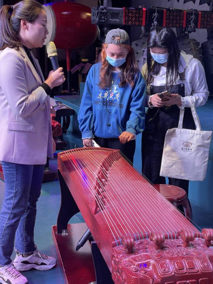 在随州市博物馆,同学们参观了曾侯乙古墓出土文物,欣赏了编钟乐舞表演,并与演员进行了互动,上了一堂别开生面的随州历史文化体验课,通过互动体验,学生对随州文化有了更深入的认识,极大地增强了大家对随州文化的认同感。