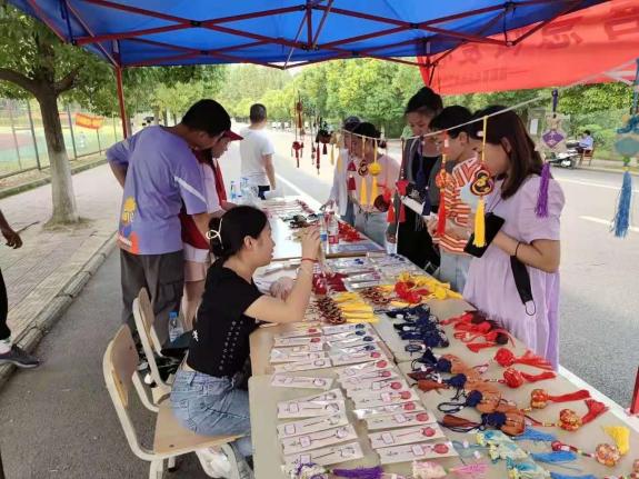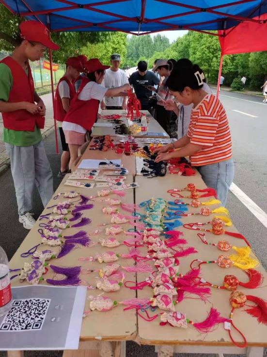 端午节前后,志愿者们在校园搭建起“守护希望 团圆香荷”展台,进行爱心义卖,为爱接力。爱心展台设立之后,同学们被制作精美的各类香包吸引,志愿者们向同学们认真介绍各个产品的寓意与功能。同学们纷纷驻足,选购心仪创产品,用一己之力助力青春扶贫,守护母爱,守护希望。