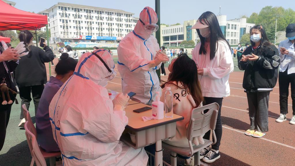 因学校人多且集中,属地社区没有足够力量,学校当机立断,主动请缨全校师生的核酸采集工作,则重任落在医学院和护理学院。校领导迅速组织分工,医学院院长王文勇、副院长冯丽,护理学院书记朱海豫、院长何宁、副院长吴鹏飞,学工处处长钟守兵、副处长汪勇、保卫处处长张文武等人紧急召集在校老师和学生干部部署安排核酸采集工作。上午10点左右,在物资到位后,第一轮核酸采集正式开始。