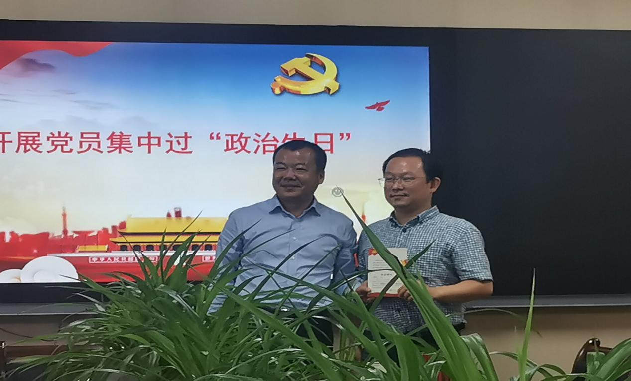 教工支部书记钱俊带领全体党员教师重温入党誓词,面对鲜红的党旗,党员们庄严宣誓,重温入党时的初心和使命,在思想上再一次接受洗礼。5名5月份入党的“政治生日”党员教师围绕入党初心,结合自身生活、工作等实际分别进行了发言,回顾了当初的入党历程,畅谈了入党以来的所思所想,分享了心得感悟,并对今后如何发挥好党员先锋模范作用作出承诺。马大奎向5名党员教师黄达、杨莉、张丽、周阳、白桦颁发“政治生日贺卡”,送上生日祝福,使党员感受到了党组织的温暖,增强了党员的荣誉感和归属感。