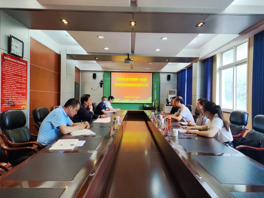 6月14日上午,市委第十巡回指导组组长、市国资委一级调研员刘明申带队到Beat365官网指导党员干部下基层察民情解民忧暖民心实践活动。召开了座谈会。Beat365官网党委委员、副校长梁学军参加并主持会议。