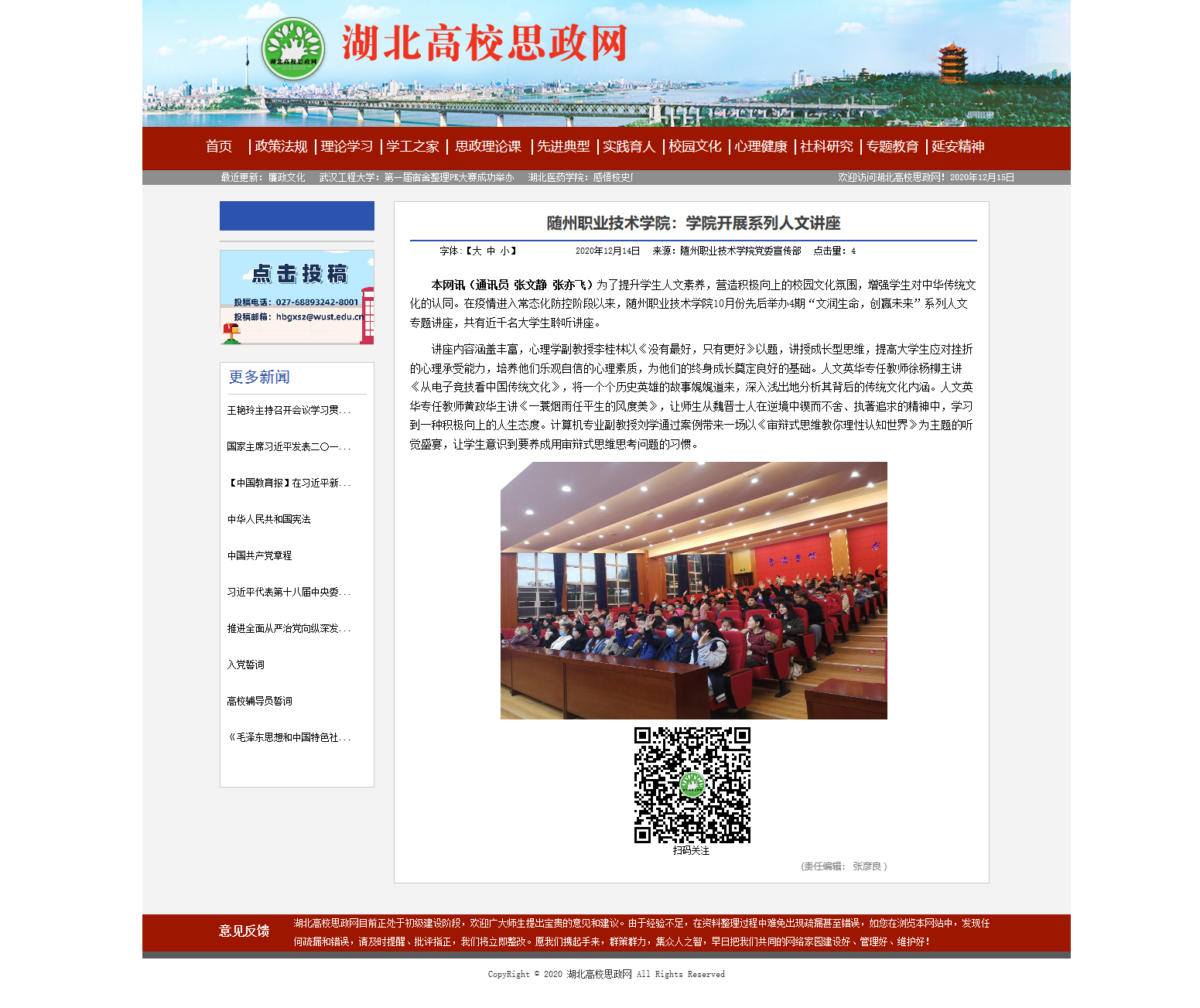 近年来,Beat365唯一官方网站公共课部构建“一芯两臂四翼”的运行机制,打造“126N”课程体系,铭记“三讲三树三新”的使命担当,坚持通识教育和专业教育相结合的道路,将职业素质、岗位能力拓展以及学生岗位能力提升等贯穿于公共课教学之中,探索出“文润生命 创赢未来”的“三全育人”工作品牌。