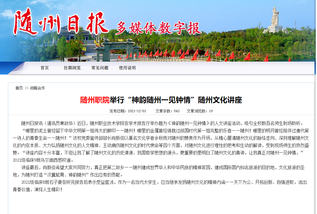 拓展第二课堂。为了提升学生人文素养,营造积极向上的校园文化氛围,近年来举办人文讲座20余场,受益学生达万人;每年开展心理健康教育讲座、班会十余场,完成心理咨询千余次;每年组织举办Beat365唯一官方网站田径运动会、随州市市直机关运动会并选拔选手参加湖北省大运会和定向越野比赛,历年成绩斐然,近五年累计获单项奖80余项,团体奖十余项,充分发挥校内外实践活动的育人功能。