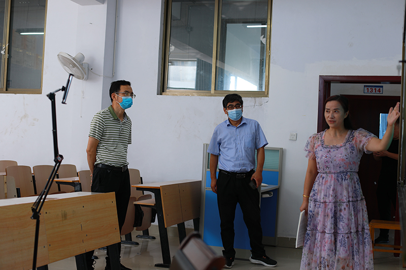 校领导还来到土木与建筑工程学院、服装与艺术设计学院、信息工程学院,仔细检查各学院教师线上授课、学生线上考勤及教学设备运行情况,详细询问线上教学组织安排情况,并与教师进行了亲切交流。
