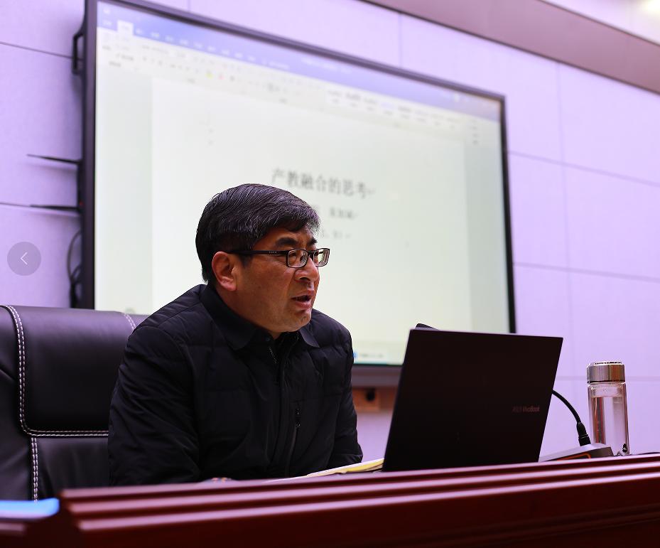 校党委委员、副校长童加斌以《随州职院产教融合的思考》为题向全校教师作了详细的报告。童加斌首先对“产教融合、校企合作、工学结合”是职业教育最基本最明显的特征,是职业教育最基本教学体系构架进行了深入细致的剖析。紧接着,童加斌从专业汽车产业、农产品加工产业、文化旅游产业、电子信息产业等15个方面对随州市支柱和优势产业进行了逐一介绍,并勾画出随州主导产业布局现状,提出学校融入随州、扎根随州、服务随州,就是融入随州产业、扎根随州产业、服务随州产业。童加斌要求全体教师积极深入地思考Beat365官网产教融合新途经、新方法,紧密对接融合随州重点产业,科学开设专业和课程,提高人才培养质量,推动学校职业教育健康发展,促进地方经济繁荣发展。