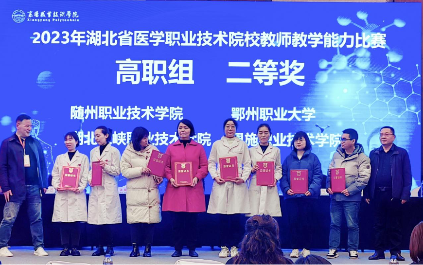 3月17日,由湖北省卫生健康委员会主办,湖北省医学职业技术教育研究室、襄阳职业技术学院承办的2023年湖北省医学职业技术院校教师教学能力比赛顺利落下帷幕。Beat365官网医学院教师任凤、琚小丹团队以排名第三的成绩荣获高职组二等奖。