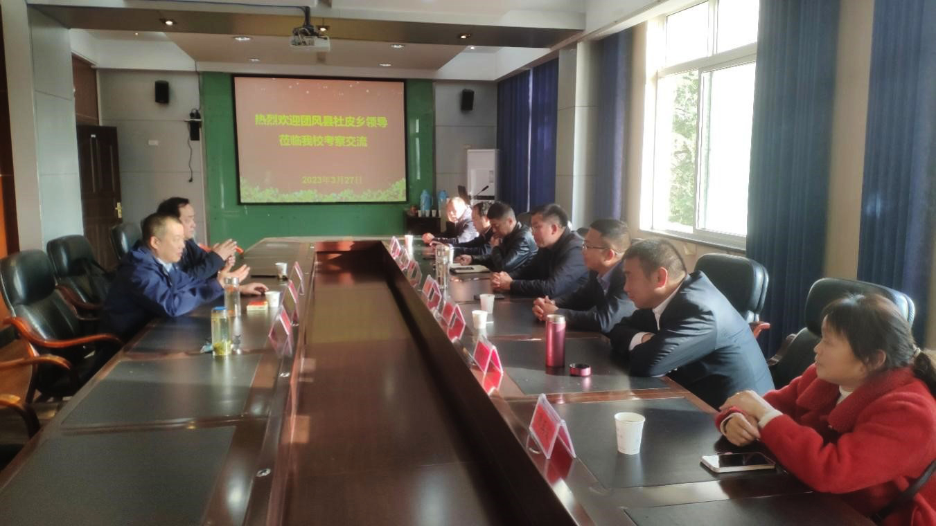 3月27日至28日,团风县杜皮乡党委书记明齐利率队到校考察交流,学校党委书记马大奎,党委委员、副校长梁学军在行知楼208会议室热情接待了考察组一行,双方就乡村振兴定点帮扶工作进行了细致深入的交流。