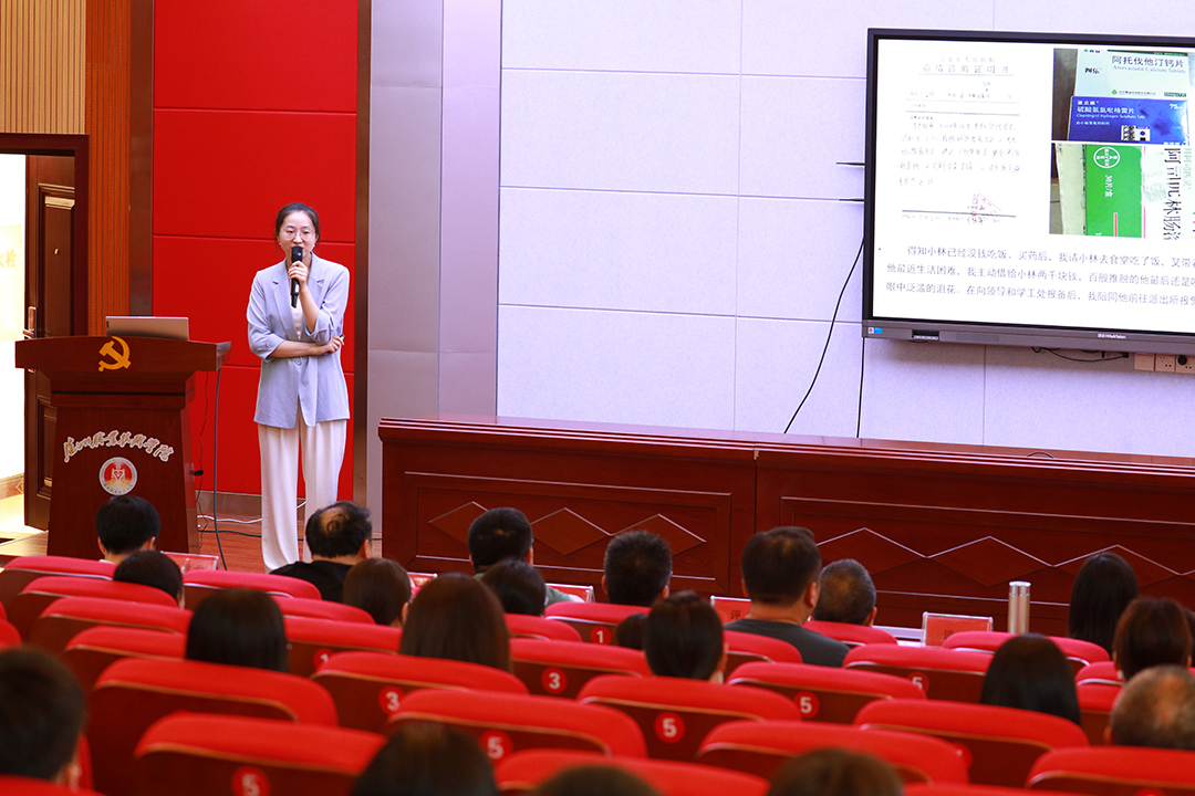 分享会上,13名辅导员用朴实的语言、真挚的情感将自己与学生间发生的真实故事娓娓道来。分享过程中,台上和台下的老师们多次湿润了眼眶,有的甚至哽咽了声音。辅导员从思想价值引领、特殊群体关爱、学业困难帮扶等各方面分享各自的育人故事,生动感人,发人深思。故事中有情怀,分享中有感动,育人中有方法。