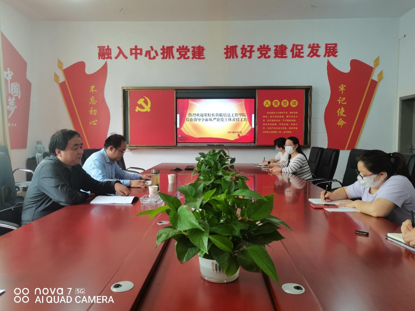 6月8日,党委委员、副校长梁学军赴信息工程学院督导检查落实全面从严治党主体责任情况,信息工程学院领导班子、中层干部和部分教师代表参加了会议。