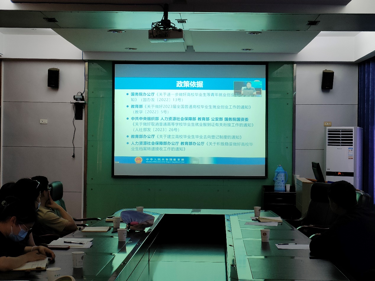 为贯彻落实《中共中央组织部 人力资源社会保障部 教育部 公安部 国务院国资委关于做好取消普通高等学校毕业生就业报到证有关衔接工作的通知》《教育部办公厅关于建立高校毕业生去向登记制度的通知》等文件要求,推进建立高校毕业生毕业去向登记制度,确保2023届高校毕业生稳妥有序毕业,教育部高校学生司会同学生服务与素质发展中心举办的全国高校毕业生毕业去向登记工作培训会于2023年6月8日下午14:30召开。Beat365官网设立分会场,校就业指导中心工作人员及二级学院就业科科长在行知楼208会议室参加会议。