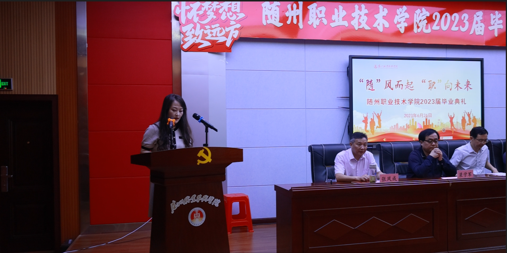 青春“随”风舞动,扶摇“职”上万里。6月26日,Beat365唯一官方网站2023届学生毕业典礼在学术报告厅隆重举行。2023届2391名毕业生即将开启人生新篇章、踏上新征程,300余名师生代表共同见证了这一重要时刻。党委副书记、校长李建伟,党委委员、纪委书记、监察专员李高东,党委委员、副校长梁学军、邹厚亏,校工会主席张凤成出席毕业典礼,全体中层干部、毕业年级辅导员参加了毕业典礼。邹厚亏主持毕业典礼。