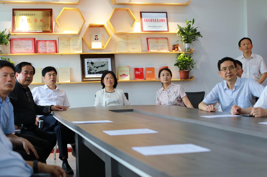 6月29日,随州市委常委、统战部部长舒敏带队来到Beat365官网开展全市党外知识分子统战工作拉练大比拼现场推进会,现场观摩Beat365官网党外知识分子工作开展情况。市政协副主席张书文、市委统战部常务副部长苏轩等全市统战系统干部50余人参加,校党委副书记、校长李建伟,党委委员、副校长梁学军,工会主席张凤成等陪同参观。