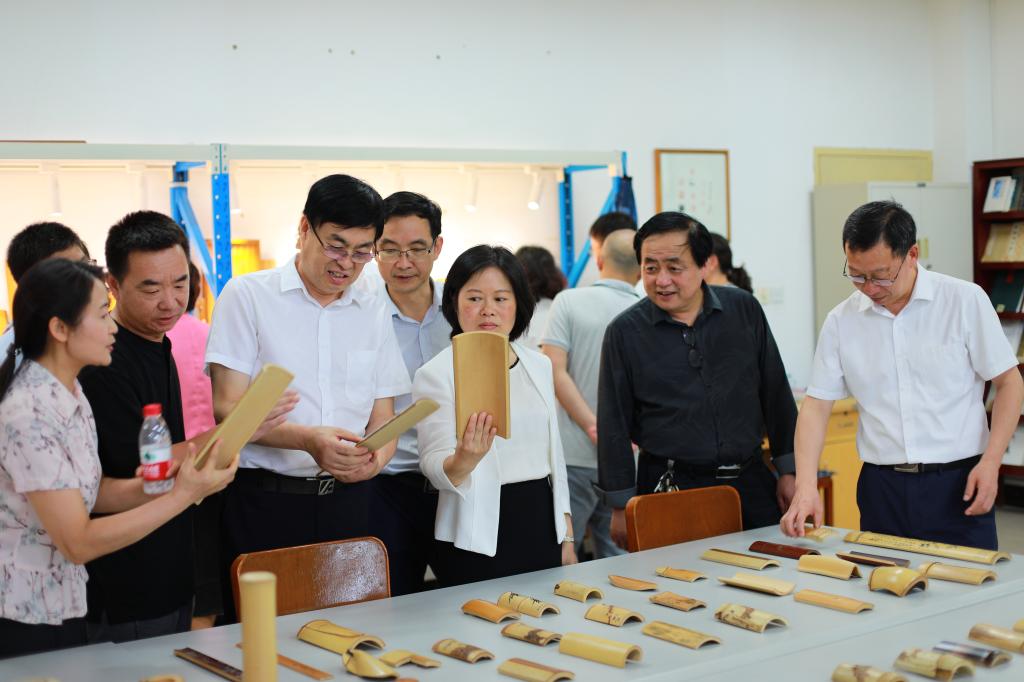 观摩现场,领导们首先参观了席宏文老师的竹刻工作室,这是随州职院首批党外知识分子双岗建功“示范基地”之一。接着参观了行知楼507“党外知识分子之家”。大家对Beat365官网党外知识分子工作情况、工作特色等给予了充分肯定。舒敏指出,竹刻工作室艺术氛围浓厚,留青竹刻是宝贵的非物质文化遗产,席宏文老师18年如一日双岗建功值得大家学习。Beat365唯一官方网站“党外知识分子之家”是随州职院210名党外知识分子政治思想教育的阵地、建言献策的平台、活动展示的窗口,为全市统战系统树立了标杆,希望大家把好经验、好做法、好理念带回去,运用到实际工作中,不断提升党外知识分子工作质效。