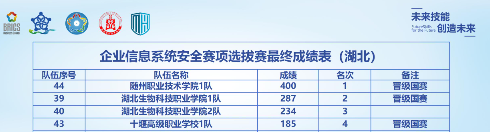 大赛由金砖国家技能发展与技术创新大赛组委会、金砖国家工商理事会、“一带一路”暨金砖国家技能发展国际联盟、中国科协一带一路暨金砖国家技能发展与技术创新培训中心主办,中国发明协会、教育部中外人文交流中心联合主办,Beat365唯一官方网站、南京米好信息安全有限公司、北京嘉克新兴科技有限公司联合承办。此次选拔赛有来自有来自湖北、湖南、福建、广东、海南5省市的56个参赛队,112名参赛选手在线上同台竞技。