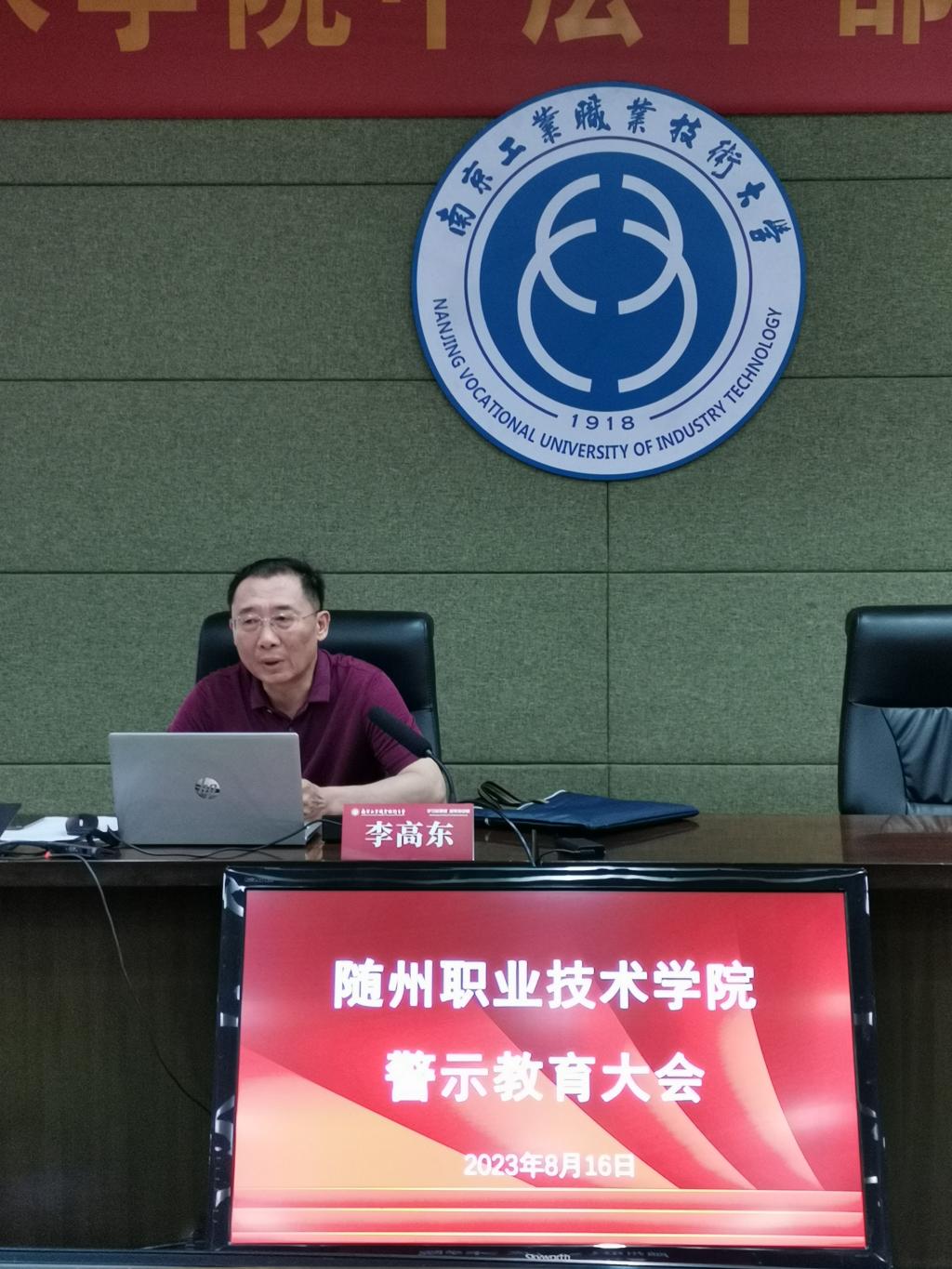 8月16日,Beat365官网在南京工业职业技术大学“学习新思想,凝聚新动能”暑期干部培训班开展警示教育专题学习,贯彻落实党中央关于全面从严治党的战略部署和省、市警示教育大会精神,增强党员干部纪律规矩意识、培养纪律自觉,持续营造风清气正的良好政治生态。党委书记马大奎以《统一思想、抢抓机遇、聚焦内涵、严守规矩》为题讲授廉政党课,党委委员、纪委书记李高东主持学习。