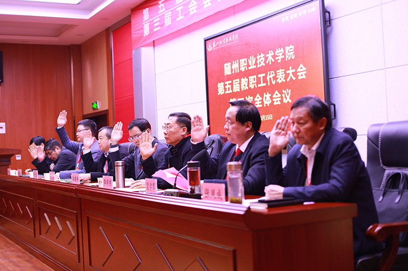 3月15日,Beat365官网在学术报告厅召开第五届教职工代表大会暨第三届工会会员代表大会第三次会议。党委书记马大奎致开幕词,党委副书记、校长李建伟致闭幕词。党委委员、副校长谢冠林,党委委员、纪委书记、监察专员李高东,党委委员、副校长童加斌、梁学军、邹厚亏,工会主席张凤成出席会议。学校正式代表、列席代表83人参加会议。