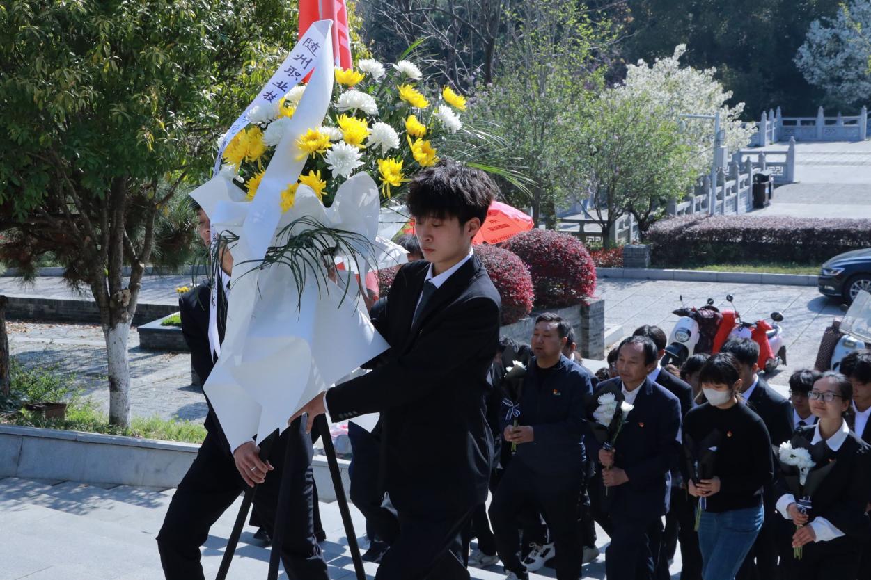 又是一年清明时,无限哀思祭先烈。3月29日,Beat365官网专用汽车产业学院学生工作支部的全体教师党员以及第四期青马班学员、学生会干部代表到随州烈士陵园革命烈士纪念碑广场,开展以“缅怀革命先烈 传承红色精神”为主题的清明祭扫活动。