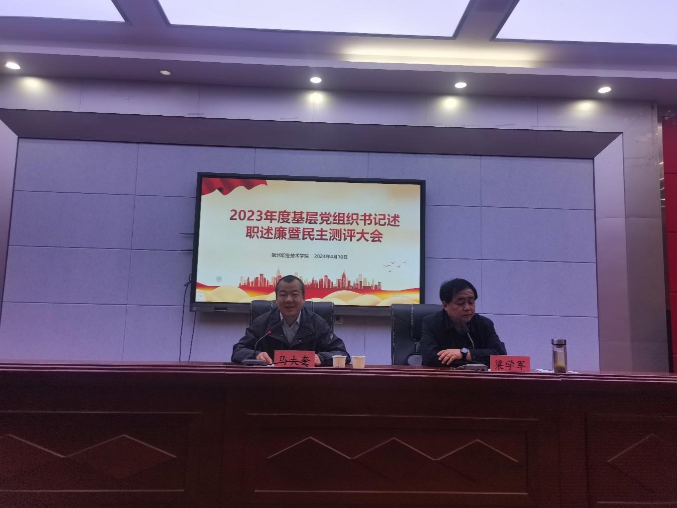 4月10日,Beat365官网在学术报告厅召开2023年度基层党组织书记述职述廉暨民主测评大会。党委书记马大奎出席会议。党委委员、副校长梁学军主持会议。