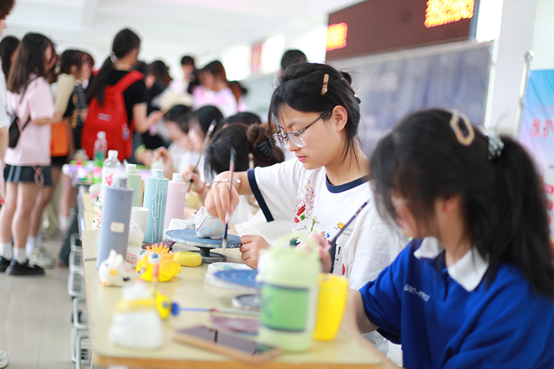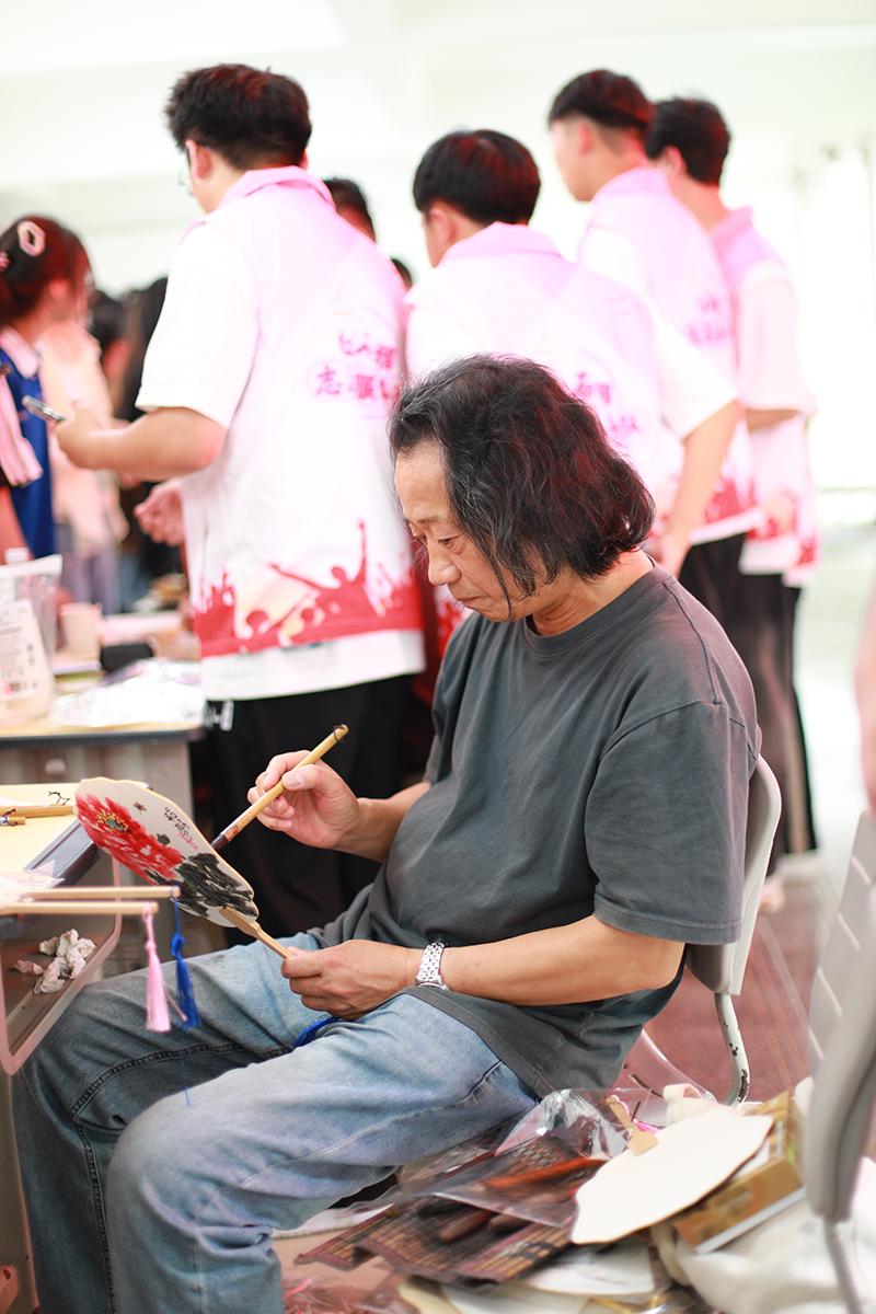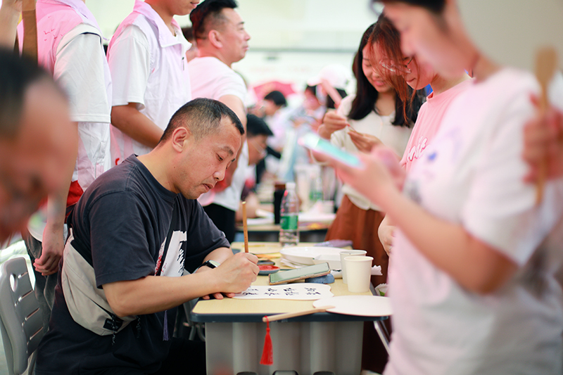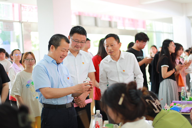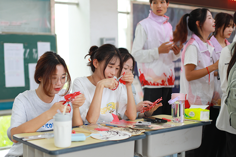 启动仪式后,Beat365官网举办了社科文化市集活动,邀请随州市书画家现场创作扇面和书签作品,Beat365官网留青竹刻、剪纸、陶艺手工等非遗传承工作室都在现场摆出摊位创作。红石榴志愿服务队的同学围绕中国式现代化主题随机提问,向答对的同学赠送书画文创作品。