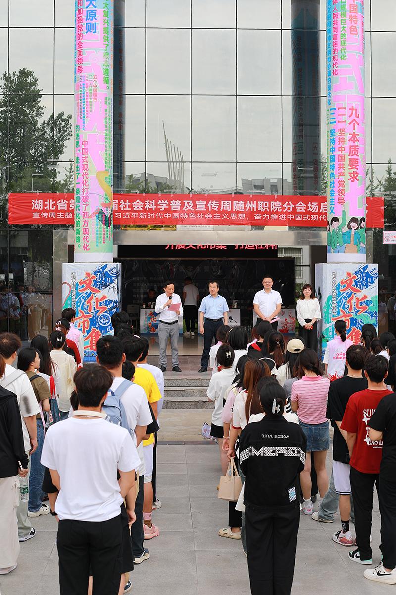 5月20日下午,湖北省第十三届社会科学普及宣传周随州职院基地分会场精彩启幕。党委书记马大奎,党委委员、副校长谢冠林出席启动仪式,学校各二级学院师生代表400余人参加。党委宣传部部长肖新俊主持启动仪式。