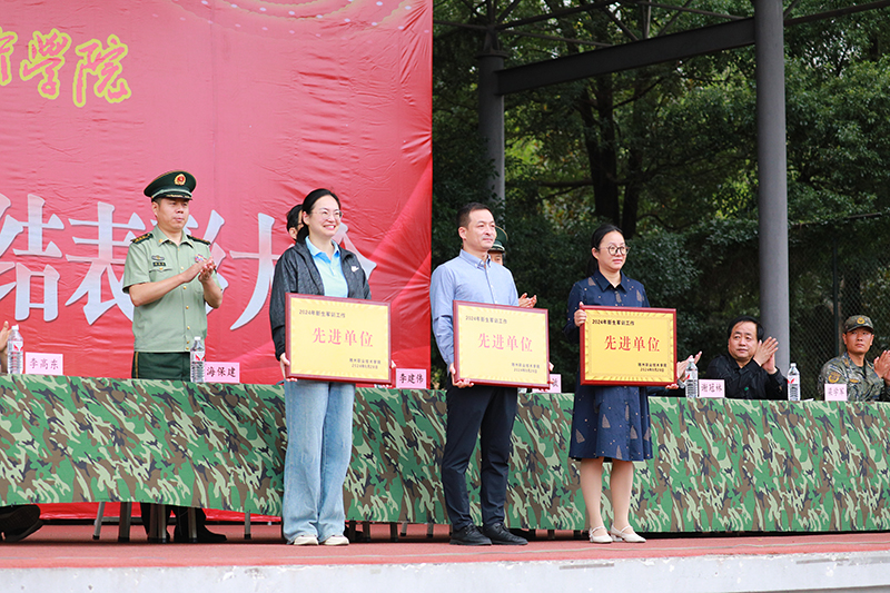 梁学军宣读军训工作表彰文件,与会领导向军训期间表现优秀的集体和个人颁发荣誉证书。李建伟向随州武警支队赠送锦旗并致谢,愿中国人民武装警察部队随州支队与随州职技术学院携手共建谱新篇,军民共筑强军梦。