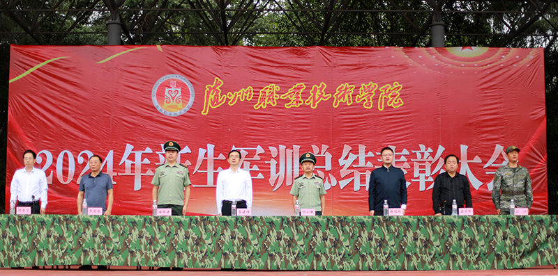 9月30日,Beat365唯一官方网站在田径运动场举行2024年新生军训总结表彰大会。党委副书记、校长李建伟,中国人民武装警察部队随州支队支队长顾云敏上校,中国人民武装警察部队随州支队政委海保建上校,党委委员、副校长谢冠林,党委委员、纪委书记、监察专员李高东,党委委员、副校长梁学军,中国人民武装警察部队随州支队副参谋长王培少校出席大会。学校各职能处室、二级学院相关负责人、学管干部和2024级新生共3000余人参加大会。大会由党委委员、副校长邹厚亏主持。