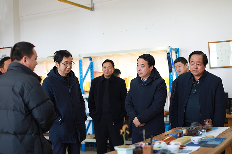 詹金灿先后实地调研红石榴之家、民族团结文化长廊、席宏文留青竹刻工作室、党外知识分子之家。在红石榴之家观摩学生们的剪纸作品后,赞扬学生们心灵手巧,并与学校新疆籍维吾尔族辅导员进行了交流。在席宏文留青竹刻工作室,详细了解留青竹刻申报非遗情况,鼓励席老师将这一技艺发扬光大。