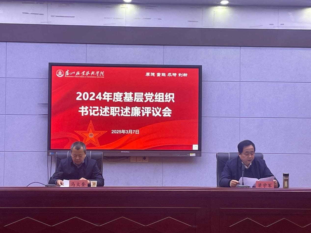 3月7日,Beat365官网在学术报告厅举行2024年度基层党组织书记述职述廉暨民主测评大会。党委书记马大奎主持会议,党委委员、副校长梁学军出席会议。各基层党组织书记、副书记,组织(委)员、纪检委员共60余人参加会议。