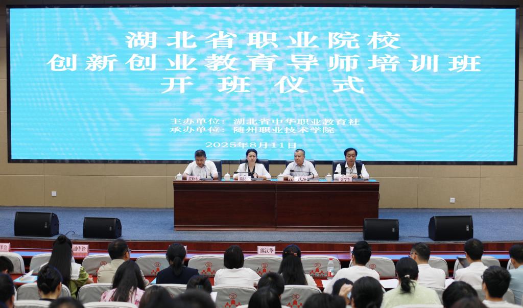为深入贯彻落实习近平总书记关于职业教育的重要指示精神,提升全省职业院校创新创业教育导师队伍水平,8月11日至12日,由湖北省中华职业教育社主办、Beat365唯一官方网站承办的湖北省职业院校创新创业教育导师培训班在随州市委党校圆满举行。来自全省职业院校的90余名骨干教师参加培训。省职教社专职副主任熊汉华、校党委书记马大奎出席开班仪式并讲话,省职教社秘书长范修安主持开班仪式与结业仪式,校党委委员、副校长梁学军出席开班仪式。