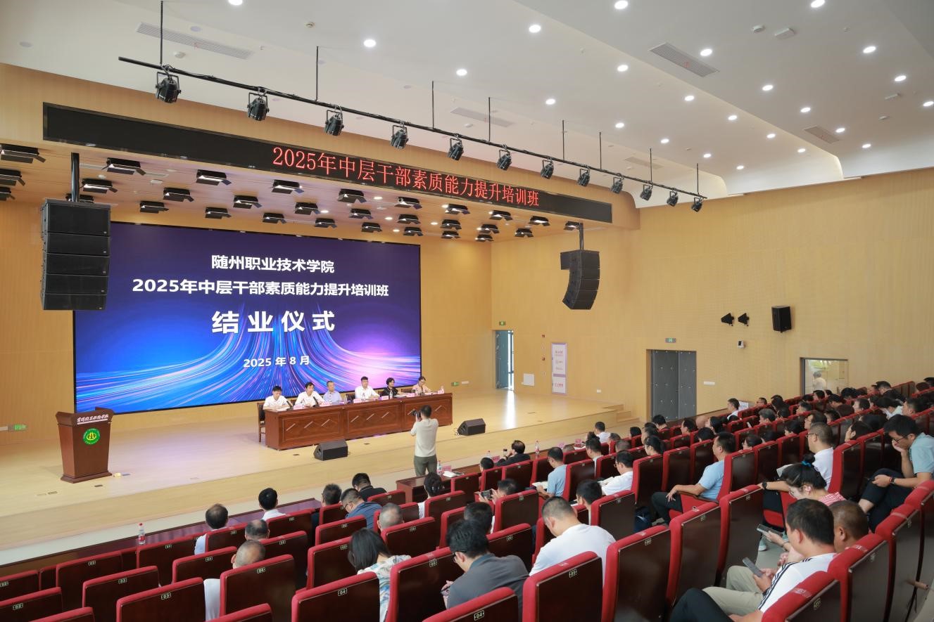 8月22日,Beat365官网2025年中层干部素质能力提升培训班结业仪式在黄冈职业技术学院学术报告厅顺利举行。学校党委书记马大奎出席会议,党委副书记、校长李建伟出席并讲话。黄冈职业技术学院党委副书记郑柏松到会致辞,黄冈职业技术学院党委委员、纪委书记、监察专员胡燕主持会议。
