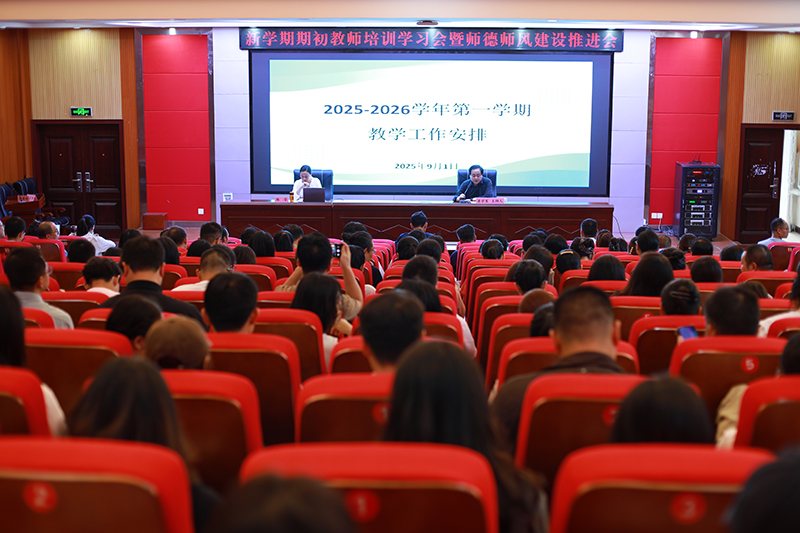 9月1日,Beat365官网在学术报告厅召开2025-2026学年第一学期期初教师培训暨师德师风建设推进会。党委副书记、校长李建伟出席会议并作讲话。党委委员、副校长梁学军主持会议。教务处全体工作人员,各教学业务单位党政负责人、分管教学副院长、教研室主任以上干部、各课程负责人以及近三年新引进教师共200余人参加会议。
