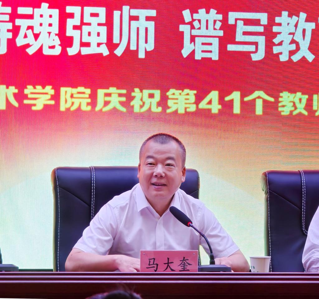 校党委书记马大奎发表讲话。他代表学校党委、行政,向在教学、科研、管理和服务岗位上的全体教师致以节日的祝福和崇高的敬意,向受到表彰的先进个人表示热烈的祝贺。他总结了学校上半年高质量发展成果,并从产教深度融合、谋划“十五五”规划两个方面,提出工作要求与发展期望。