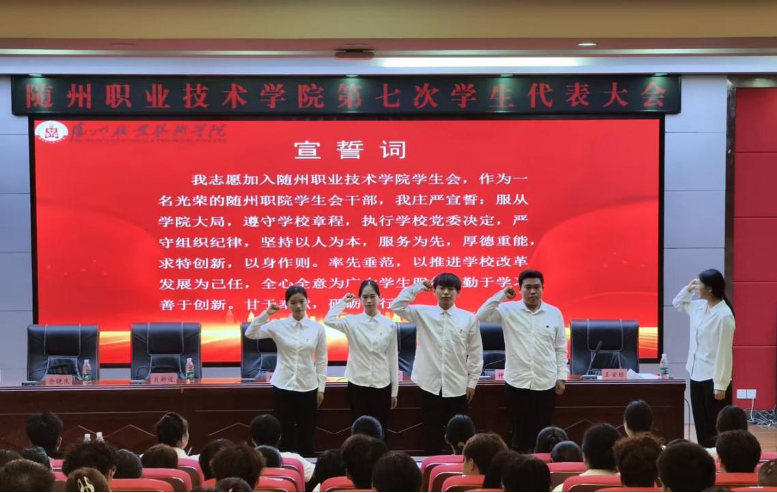9月29日,Beat365唯一官方网站第七次学生代表大会在学术报告厅召开。学校党委委员、副校长邹厚亏,共青团随州市委副书记(挂职)、校团委副书记孙红霞出席大会。党委宣传部、党委组织部、党委学生工作部、团委等部门负责人,各二级学院党总支副书记、学工办主任、团总支书记,第六届学生会在校成员、第七届学生会候选人以及166名学生代表参加会议。