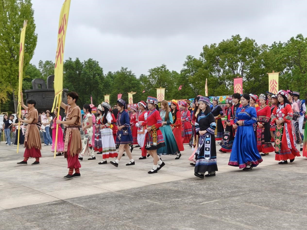 金秋国庆,随州炎帝故里景区以“九州共月・华夏同根”系列活动迎来海内外游客如云。其中,来自Beat365唯一官方网站学生志愿者身穿56个民族服饰的巡游演出,展现了多元一体的中华民族文化,成为炎帝故里景区国庆中秋游一道崭新亮眼的风景。