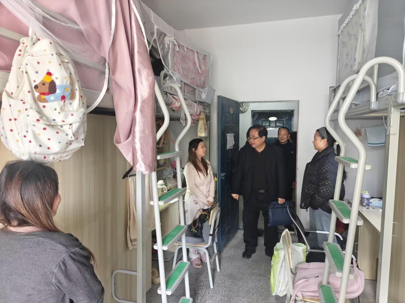 走访期间,梁学军深入2栋315等宿舍,实地察看学生住宿环境与设施条件,详细了解2023级学生的学习、生活情况。他勉励同学们要珍惜实习机会,在实践中虚心学习、扎实工作,不断提升专业技能和综合素养,为未来职业发展奠定坚实基础。